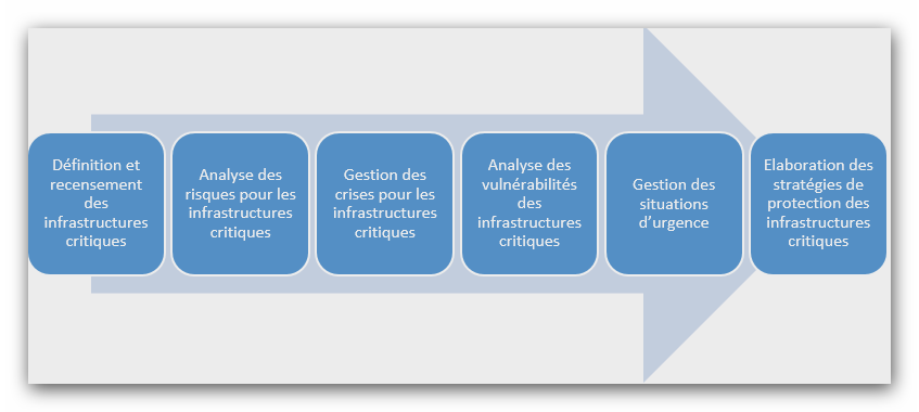 Par infrastructures critiques, on entend les biens et services revêtant une importance capitale pour la population et l’économie, tels que l’énergie, les transports, la finance, la santé, ou la défense. Des perturbations graves de l’approvisionnement en électricité, des trafics ferroviaires ou autres pourraient provoquer des dommages importants.